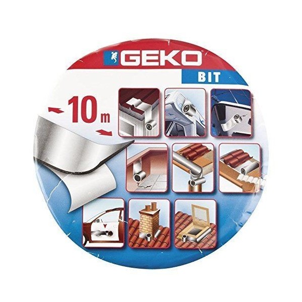 Bande d'étanchéité auto-adhésive. Bitume élastomère autocollant, élastique, recouvert d'une feuille de protection métallique. Finition aluminium. Assure l'étanchéité des liaisons entre les éléments de toiture (raccordement murs et toitures, solins de cheminées, faîtages, rives, noues, ... ), des gouttières, chéneaux. Résiste aux UV, ne se déchire pas. Très élastique, résiste aux déformations des supports. 100% étanche.