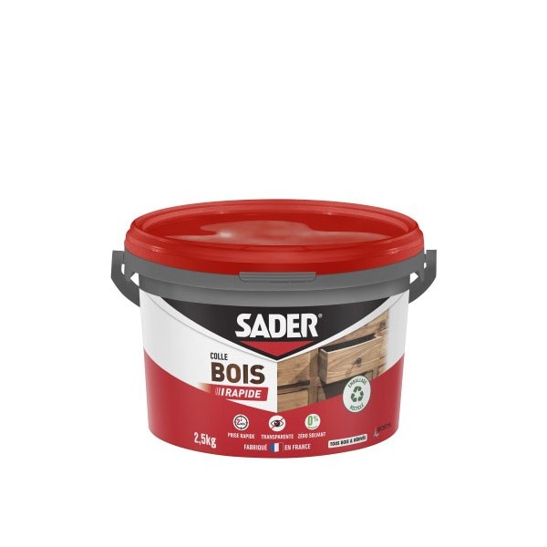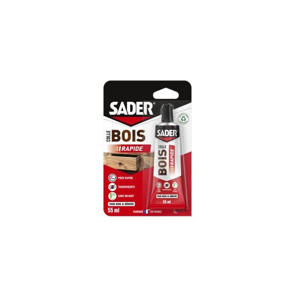 Colle vinylique blanche pour assemblage et placage de tous les bois et leurs dérivés. Ne tache pas. Invisible après séchage. Prise rapide. Temps de serrage de 5 minutes seulement.