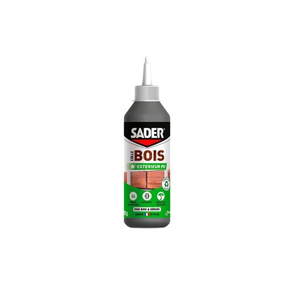 La colle BOIS EXTÉRIEUR SADER® est une colle polyuréthane (PU) mono-composante conçue pour les travaux milieux humides. Très bonne rd'assemblage et de réparation en extérieur de tous types de bois et de leurs dérivés. Elle convient à toutes les essences de bois même exotiques (teck, acajou, bambou... ). Sa prise se fait sous l'action de l'humidité contenue dans les supports.