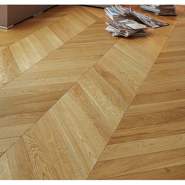 Parquet contrecollé monolame, motif point de Hongrie. Support contreplaqué. 4 chanfreins. Longueur : 650mm sur plat (789mm de pointe à pointe) largeur : 139mm. Epaisseur : 14mm. Parement : 3,4mm. Fabrication française. Garantie : 30 ans. Paquet de 1,45m².