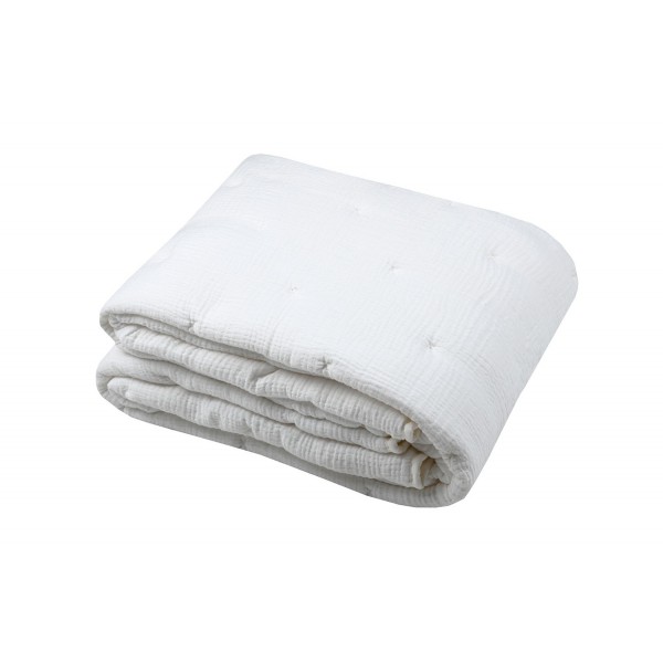 BOLTON plaid 300 gr/m2 façon édredon en gaze de coton. 1 face double gaze de coton,1 face polyester uni coordonné. Plaid décliné dans 8 coloris actuels : Carbone - Ecru - Emeraude - Grenache - Moutarde - Naturel - Orage - Sauge, avec une finition piquage broderie. Plaid légèrement matelassé façon édredon peut être utilisé comme un complément de chaleur. Idéal pour votre chambre à coucher pendant les soirées d'hiver. La gamme Bolton peut etre aussi utilisée en chemin de lit.