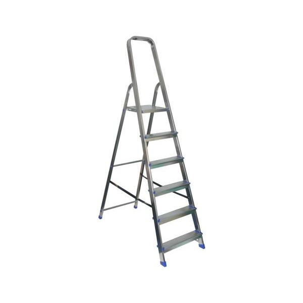 Escabeau de sécurité en aluminium avec plateau en acier. Sabots stables anti-dérapants, hauteur du garde corps de sécurité 60cm. Charge garantie 150kg maximum. Particulièrement robuste, plus sûre, plus confortable, sans risque de glissement. Norme EN131.