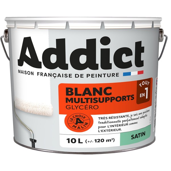 | Conseils | Se conformer au DTU 59. 1. Préparation - Les supports seront propres et sains, les anciennes peintures convenablement lessivées, et les parties métalliques protégées par une couche de primaire anti-rouille. APPLICATION - Bien mélanger avant application. Sur fonds cohérents préalablement imprimés, appliquer 2 couches de ADDICT Laque Glycéro Satinée sans dilution. Ne pas appliquer par température inférieure à 5°C ou supérieure à 30°C. |