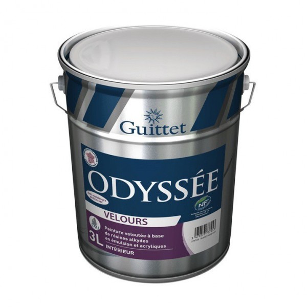 Peinture veloutée à base de résines alkydes en émulsion et acryliques. Pour la décoration des maçonneries en intérieur en travaux neufs ou d'entretien, en pièces sèches ou humides. Etat de finition A ou B (selon préparation des supports). Impression et finition, applicable en direct sur les supports intérieurs : plâtre, plaque de plâtre, bois, PVC. Très grande facilité d'application grâce au temps ouvert suffisamment long, rapidité de séchage permettant l'application de 2 couches dans la journée, ou bien en "mouillé sur mouillé". Protection du film de peinture contre le développement des moisissures. Bonne opacité, bonne blancheur, excellent rendement. Degré de brillance : 5% sous 60° d'angle, aspect poché arrondi. Classe B. Label NF Environnement.