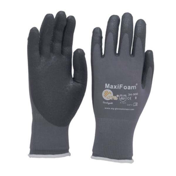 Gant spécial peinture. Lavable à 40°. Support Nylon tricoté sans couture en mousse nitrile. Enduction paume et doigts. Sans silicone. Evacue la peinture et l'huile. Très agrippant. Laisse le sens tactile intact. Respirabilité à 360°. Couleur : gris. Norme NF EN 388 : 4121A