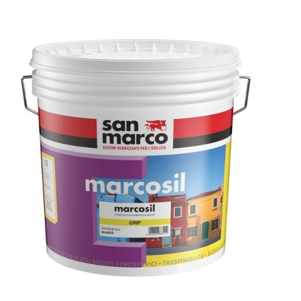 Le Marcosil Grip de San Marco est un fond de liaison minéral aux silicates conçu pour préparer les façades avant l'application des peintures de la gamme Marcosil. Formulé à base de silicate de potassium modifié, il permet d'appliquer des finitions minérales mêmesur d'anciennes peintures synthétiques, tout en uniformisant l'absorption du support. Doté d'un fort pouvoir garnissant et masquant, il recrée l'aspect minéral des enduits traditionnels et offre une excellente respirabilité, ce qui le rend particulièrement adapté aux travaux de rénovation et à la restauration des façades anciennes.