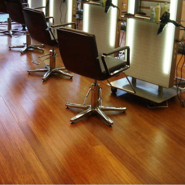 Parquet en bambou massif compressé à très haute pression. Epaisseur : 10mm. Finition usine : verni UV d'aspect mat. Densité exceptionnelle (1150kg/m3). Dureté exceptionnelle : 83 sur l'échelle de Brinell. Adapté aux zones de passage les plus intensifs : restaurants, magasins, hôtels... Coloris : caramel. Boîte de 1,38m².