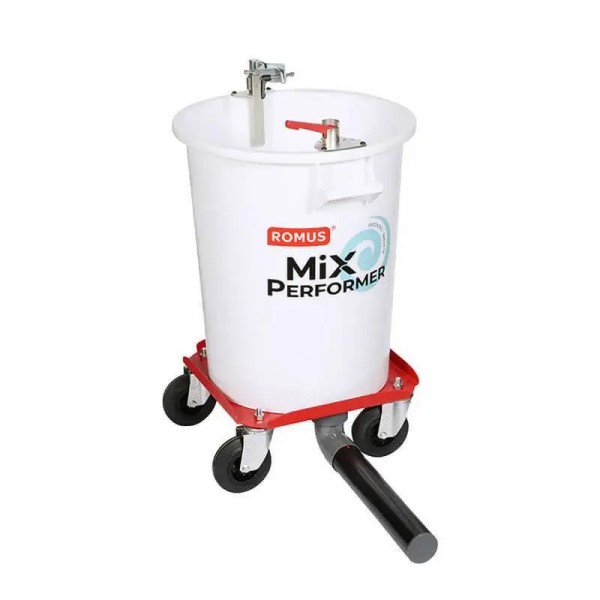 La station mélange+application Mix Performer est un outil dans lequel on peut mélanger mais également appliquer le ragréage. appliquer le ragréage. La station Mix Perfomer se manipule debout ce qui préserve les genoux ainsi que le dos. 1 seul appareil pour mélanger et appliquer le ragréage, utilisable par 1 personne seule 2 manières d'être utilisée : - avec 2 stations Mix Performer et 1 seule personne pour 400m² en 4h soit 100m²/h - avec 1 station Mix Performer et 1 seule personne pour des chantiers plus petit