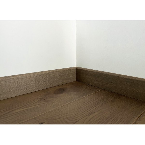Plinthe en MDF plaqué bois brut ou vernie. Disponible en 16 coloris en 78 ou 80mm , et en chêne satiné en 100mm ( avec doucine ). Vendues par paquets de 6 pour les références non stockées.
