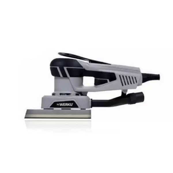 Ponceuse triangulaire Werku Wk401780 100 x 150 mm 350 W sans balais Corps en ABS composite. Moteur sans balais. Système d'extraction compatible aspirateur. Poignée avec protège-poignet. Sélecteur 6 vitesses. Fonction de rotation rotorbitale. Fixation de la lame par velcro. Affichage numérique Comprend une feuille de papier microperforée de 100 x 150 x 150 mm. Comprend un tuyau d'aspiration de 1,1 mètre.