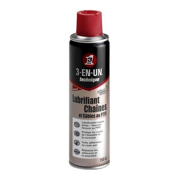 Lubrifie durablement les chaînes, câbles et mécanismes dérailleur tout en les protégeant de la corrosion provoquée par les environnements humides. Repousse les salissures et la poussière. Permet d'améliorer la performance de tous les cycles. Forte adhérence, ne coule pas.