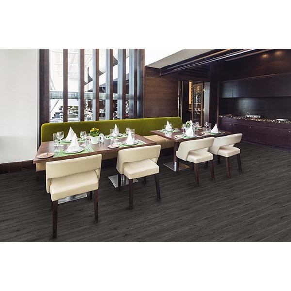 Revêtement de sol vinylique hétérogène compact à coller d'une épaisseur de 2,5mm (NF EN ISO 24346). DECORALIA LVT à coller 55 est classé 23/33 (usage résidentiel élevé ou commercial élevé), QB-UPEC U3P3E2C2 (N°741/360-002. 1_02/23) et Feu Bfl-S1 (NF EN 13501-1). Il bénéficie d'un traitement de surface PUR, d'une couche d'usure de 0,55mm, et offre une bonne stabilité dimensionnelle de < ou = à 0,25%, et une résistance au poinçonnement < ou = à 0,10mm. Il est résistant à l'abrasion (groupe T). Il est anti-dérapant DS, a une solidité à la lumière > ou = à 6, et il est très résistant aux sièges à roulettes et aux pieds de meubles. Il convient par le sol (maxi 27°C) ety est garantie 15 ans en usage résidentiel.