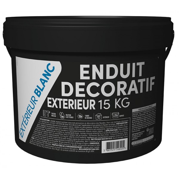 Enduit extérieur d'aspect crépi rustique, à base de résine acrylique en phase aqueuse pour la protection et la décoration des façades. Formulé pour les surfaces verticales extérieures, idéalement sur façades en atmosphère rurale ou urbaine. Grande facilité d'application. Microporeux et sans odeur. Le dessin sera obtenu avec un rouleau décor en caoutchouc. Ne pas appliquer par température inférieure à 5°C ou supérieure à 30°C.
