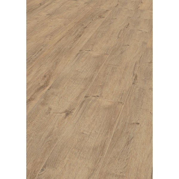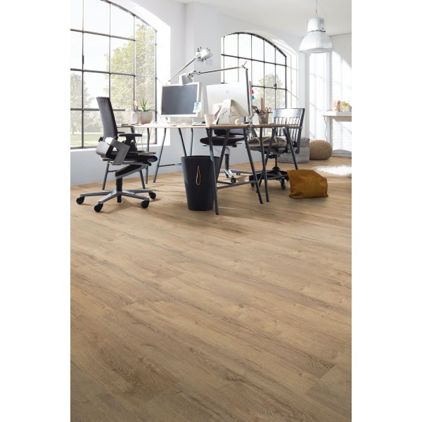 Revêtement de sol stratifié classé AC4, finition de surface effet structure bois. Equipé du clic 5G dernière génération permettant de poser individuellement chaque lame facilement. Chanfreiné sur les 4 côtés pour un effet décoratif plus marqué. Il est garanti 25 ans contre l'abrasion pour un usage privé, et 3 ans pour un usage commercial. Paquet de 2,130m² : 8 lames de 1380x193mm.