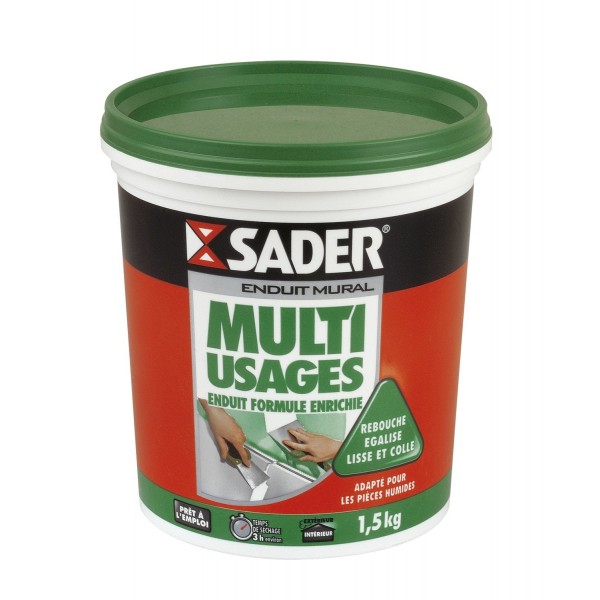 Enduit formule enrichie : rebouche de 3 à 5mm de trous, cavités, fissures, fentes, saignées ou rayures. Lissage pelliculaire des murs et plafonds. Collage de plaques de plâtre et petits carreaux de faïence. Résiste à l'eau. Destination : intérieur et extérieur. Existe en pâte ou en poudre.