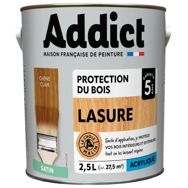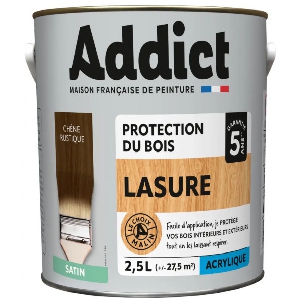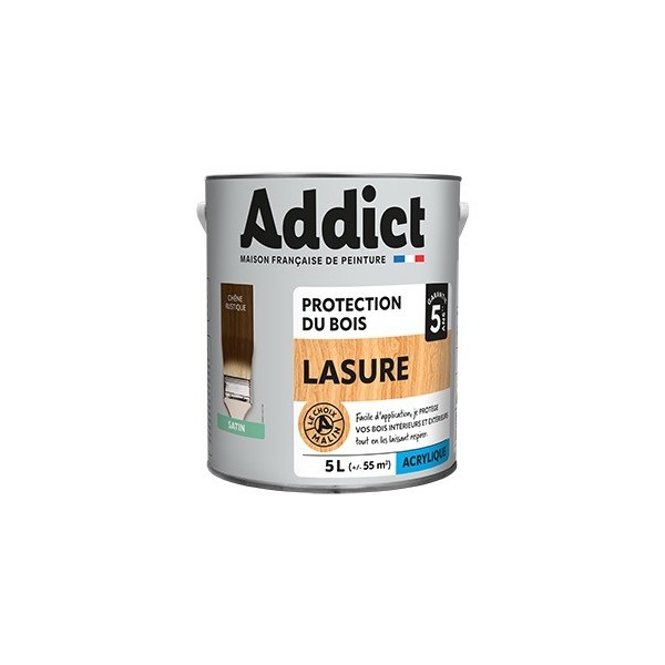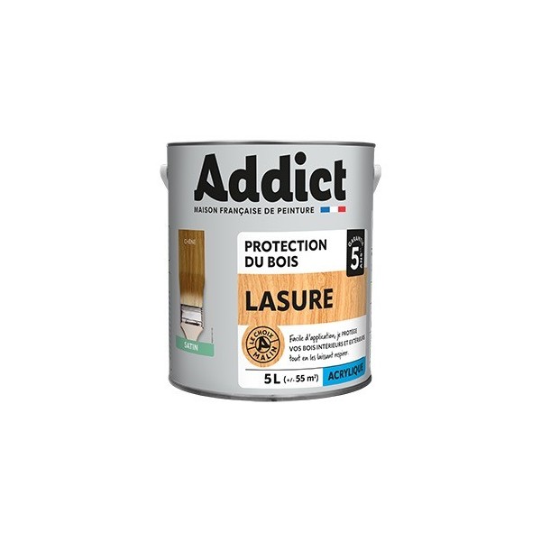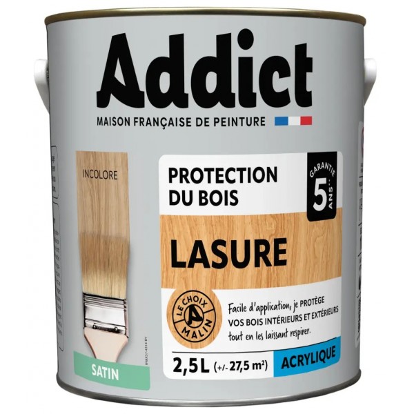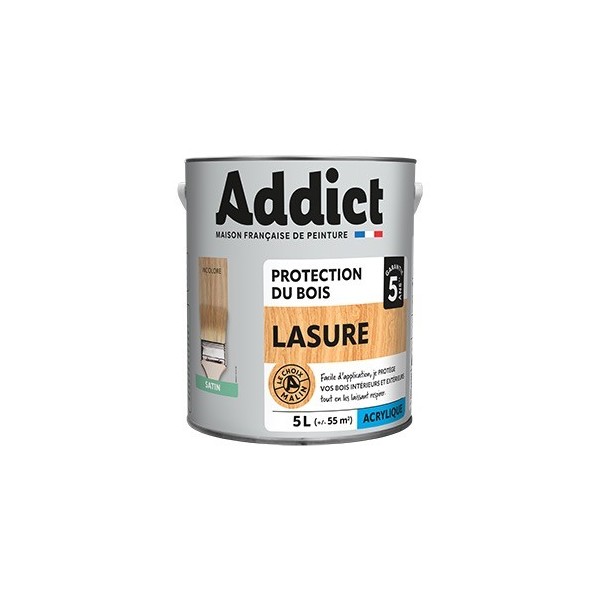 Lasure bois acrylique en phase aqueuse et d'aspect satiné pour protéger, imperméabiliser et décorer les bois en intérieur et extérieur. Hydrofuge : crée une imprégnation semi-pelliculaire transparente. Offre une longue durée de protection et respecte le veinage du bois. Supports adéquats : bois feuillus, bois résineux préalablement bien dégraissés (des exudations peuvent se produire même un certain temps après l'application), bois tropicaux (sauf l'Iroko, le Teck, et le Doussié) et bois anciens déjà imprégnés avec une ancienne lasure après nettoyage soigné.