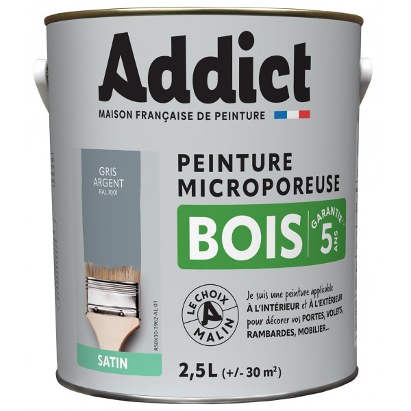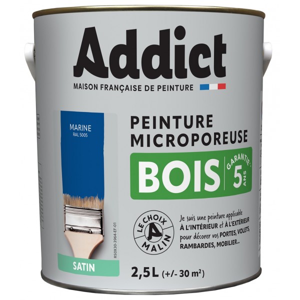 Peinture glycéro en phase solvant, microporeuse et d'aspect satiné, pour la protection et la décoration du bois. Régule l'humidité et protège à long terme le bois et les boiseries. Supports adéquats : tous les bois (feuillus, résineux et tropicaux) utilisés dans la construction, après ponçage et élimination des graisses et des salissures. Les bois contenant des résines non fixées ou des oléorésines seront dégraissés aux solvants cétoniques ou aromatiques, et les anciennes peintures adhérentes seront convenablement lessivées. Régularise l'humidité du bois et l'imperméabilise aux eaux de ruissellement. Multicouche.