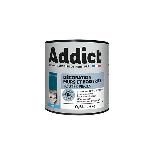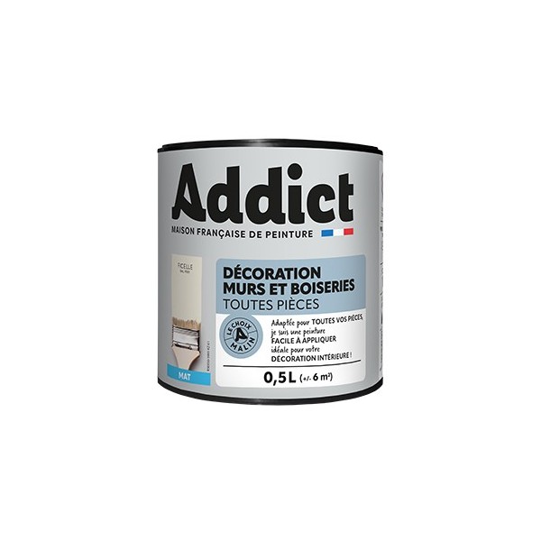 | Conseils | Se conformer au DTU 59. 1. Préparation - Les supports seront propres et sains, les anciennes peintures convenablement lessivées, et les parties métalliques protégées par une couche de primaire anti-rouille. APPLICATION - Bien mélanger avant application. Sur fonds cohérents appliquer 2 couches de ADDICT Peinture Acrylique Satinée. Ne pas appliquer par température inférieure à 5°C ou supérieure à 30°C. |