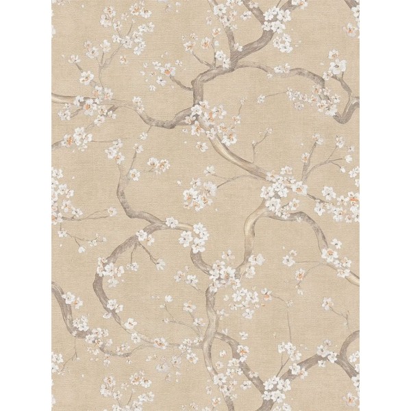 Ce papier peint met en scène de délicates branches sinueuses parsemées de petites fleurs blanches, inspirées des cerisiers en fleurs. Le dessin, fin et légèrement texturé, se déploie avec élégance sur un fond beige chaud à l’aspect textile, créant une atmosphère douce et apaisante.Les nuances naturelles de brun, de crème et de touches légèrement rosées apportent une belle harmonie visuelle. Ce motif évoque un esprit japonisant tout en restant très accessible, idéal pour instaurer une ambiance sereine et lumineuse dans un salon ou une chambre.Ce papier peint intissé allie raffinement décoratif et facilité de pose, pour habiller les murs avec subtilité et poésie.