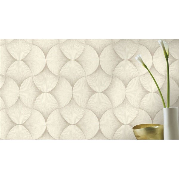 Un jeu graphique structuré prend forme à travers une composition de cercles imbriqués, évoquant des écailles ou des éventails stylisés. Les lignes fines créent un relief visuel subtil, donnant vie à un motif rythmé et harmonieux.Les teintes beige clair et ivoire renforcent la douceur de l’ensemble, tandis que les ombres délicates apportent profondeur et sophistication. Ce décor habille le mur avec modernité tout en conservant une grande élégance.Ce papier peint intissé transforme l’espace avec style et facilité, pour un rendu aussi esthétique que pratique.