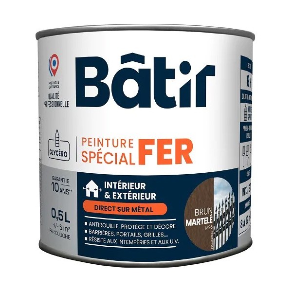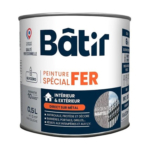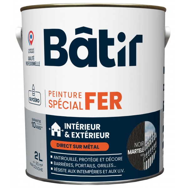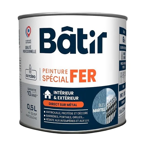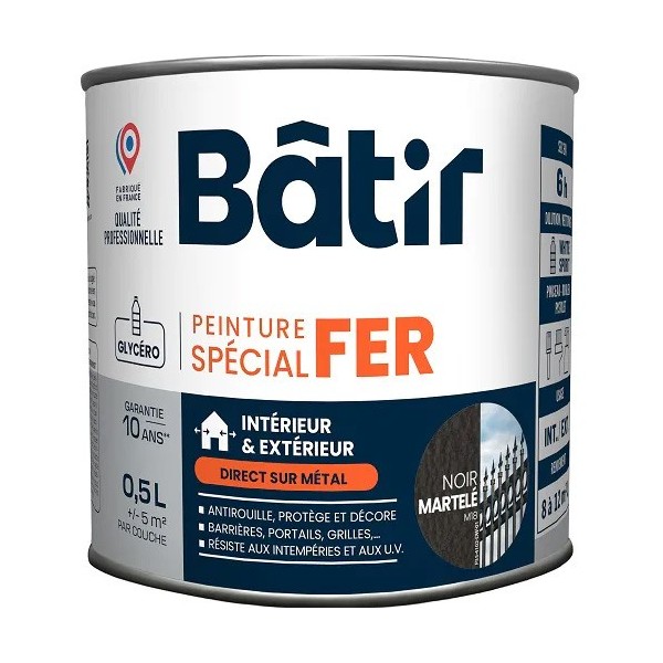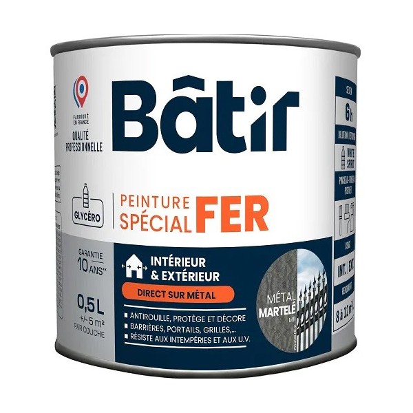 Peinture laque glycéro en phase solvant, anti-rouille d'aspect et finition martelé et assurant le double rôle de primaire et de finition. Supports adéquats : fer et métaux ferreux après une préparation soignée. Assure la protection du fer et sa décoration. Apporte une grande dureté et une grande souplesse. Très bonne tenue en extérieur. Excellent pouvoir anti-corrosion.