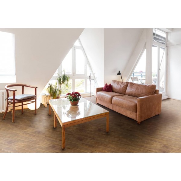 Revêtement de sol vinylique hétérogène compact à coller d'une épaisseur de 2,5mm (NF EN ISO 24346). DECORALIA LVT à coller 55 est classé 23/33 (usage résidentiel élevé ou commercial élevé), QB-UPEC U3P3E2C2 (N°741/360-002. 1_02/23) et Feu Bfl-S1 (NF EN 13501-1). Il bénéficie d'un traitement de surface PUR, d'une couche d'usure de 0,55mm, et offre une bonne stabilité dimensionnelle de < ou = à 0,25%, et une résistance au poinçonnement < ou = à 0,10mm. Il est résistant à l'abrasion (groupe T). Il est anti-dérapant DS, a une solidité à la lumière > ou = à 6, et il est très résistant aux sièges à roulettes et aux pieds de meubles. Il convient par le sol (maxi 27°C) ety est garantie 15 ans en usage résidentiel.
