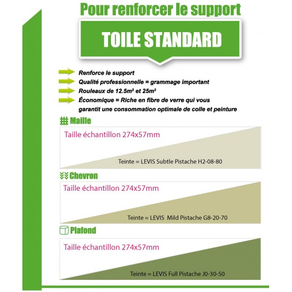 Revêtement mural à peindre standard pour une protection maximale des murs et des plafonds. Il offre une résistance élevée aux fissures et à l'abrasion. Il s'applique de façon traditionnelle, et l'arasement est irréprochable même quand la toile est détrempée. Très agréable à peindre. Spécial gros travaux. Solide et résistant.