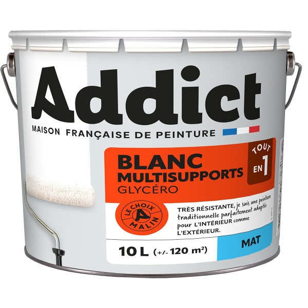 | Conseils | Se conformer au DTU 59. 1. Préparation - Les supports seront propres et sains, les anciennes peintures convenablement lessivées, et les parties métalliques protégées par une couche de primaire anti-rouille. APPLICATION - Bien mélanger avant application. Sur fonds cohérents préalablement imprimés, appliquer 2 couches de ADDICT Laque Glycéro Satinée sans dilution. Ne pas appliquer par température inférieure à 5°C ou supérieure à 30°C. |