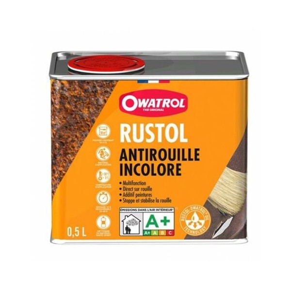 Anti-rouille incolore, pénétrant et isolant pour intérieur et extérieur. Peut s'appliquer sur bois, plastiques, verre.