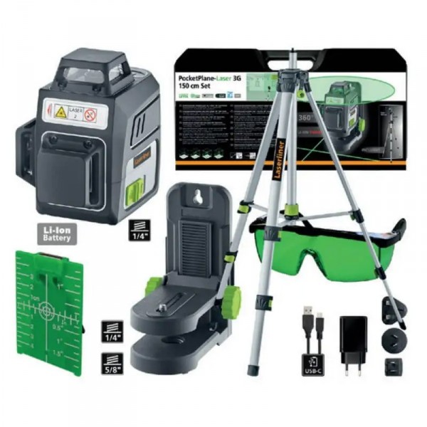 | Conseils | Fixation multifonctionnelle, magnétique et réglable en hauteur pour poser le laser sur des murs, des structures métalliques et des trépieds équipés de raccords filetés de 1/4" et de 5/8". Livré complet en mallette PVC, avec trépied 1,50m, une cible magnétique, une paire de lunettes vertes et chargeur. Transport LOCK (Verrouillage pour le transport)-un système de blocage pendulaire protège l'appareil pendant le transport. |