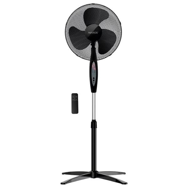 Ventilateur métallique sur pied. Dimensions : 1220x400mm. Puissance 55W. 230V,50Hz. 3 vitesses. 2 positions : fixe ou rotative. Hauteur réglable. Grille de protection. 1250 RPM. Angle d'inclination réglable.